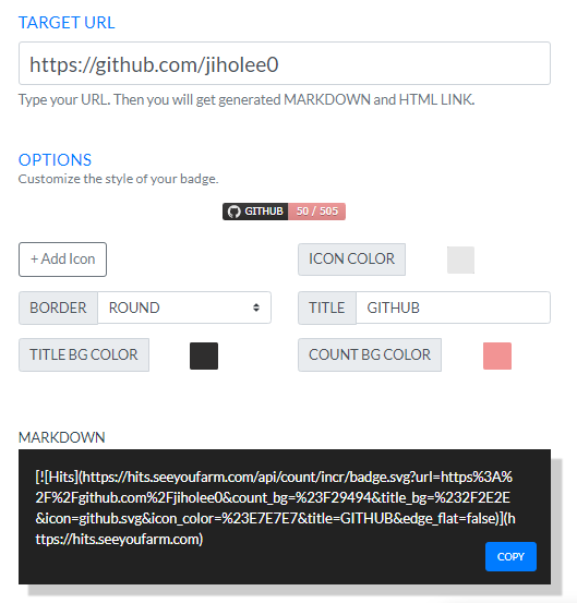 ๋ฑ์ง ์์ฑ ์ฌ์ดํธ : https://hits.seeyoufarm.com/
