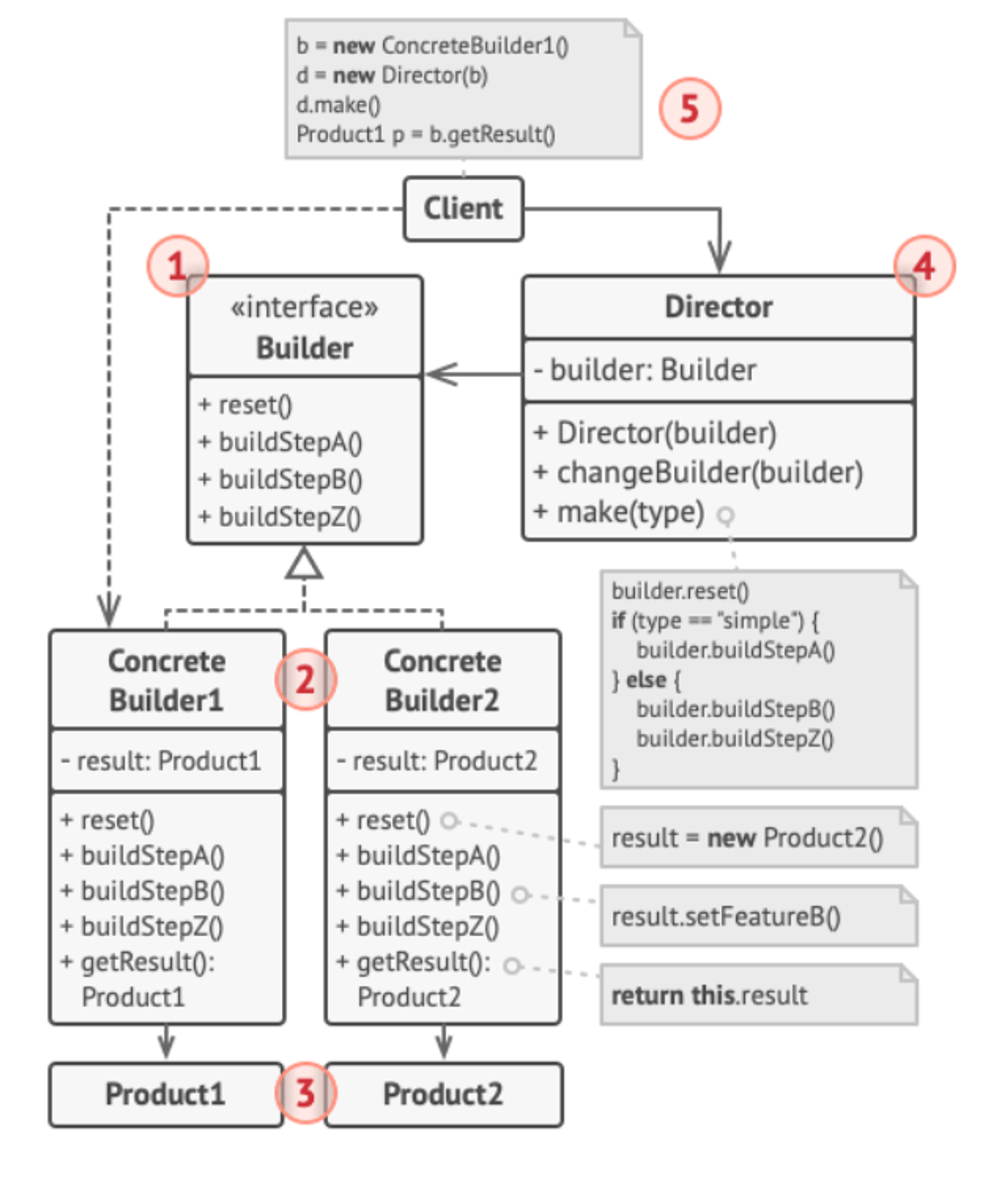 - Concrete Builder : ์์ฑ ๋จ๊ณ๋ค์ ๋ค์ํ ๊ตฌํ