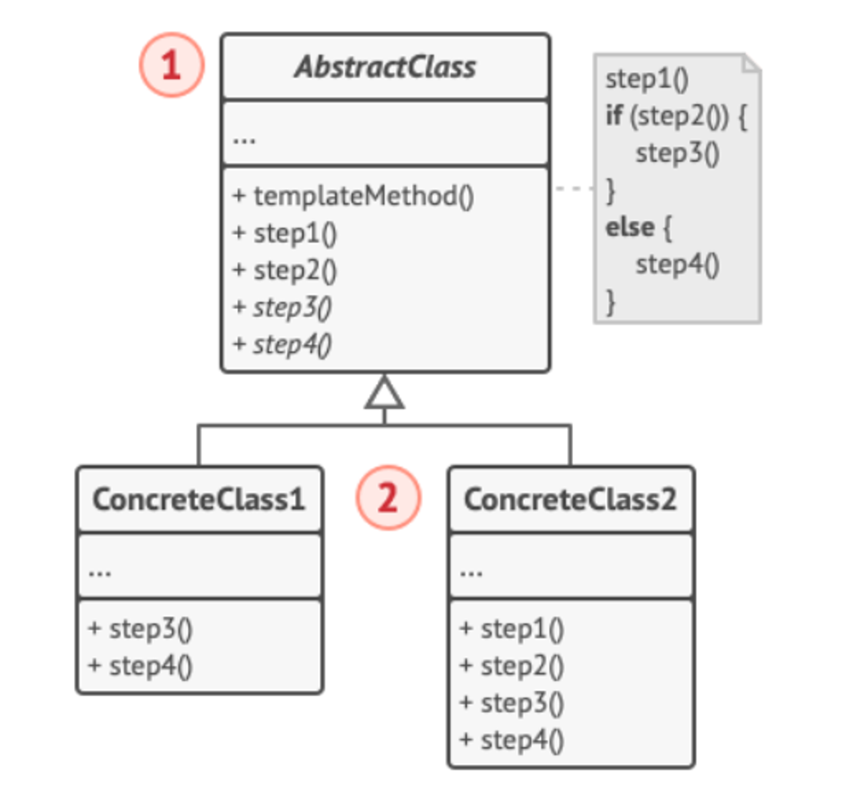 - Concrete Class : λͺ¨λ λ¨κ³λ€μ μ€λ²λΌμ΄λν μ μμ§λ§, ν νλ¦Ώ λ©μλ μ체λ μ€λ²λΌμ΄λν μ μμ΅λλ€.